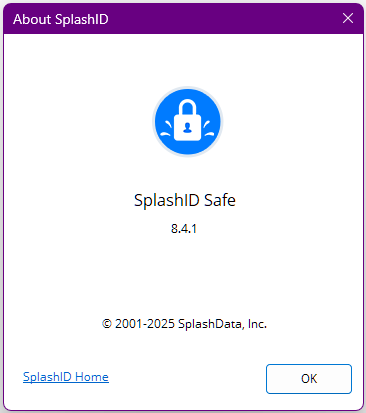 * If you have SplashID Desktop 6.x/Safe or higher, click the SplashID icon in top left, then click About -->